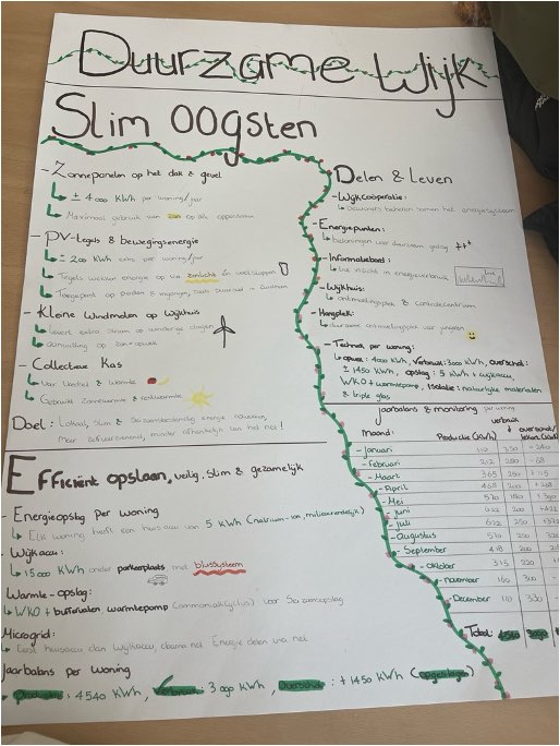 We noemden onze wijk Ecovia. In deze wijk wekken bewoners hun eigen energie op via zonnepanelen op elk huis. We bedachten ook een centrale wijkaccu, waarin overtollige energie wordt opgeslagen. Die energie wordt vervolgens verdeeld via een microgrid, een slim netwerk dat ervoor zorgt dat alle huizen voldoende stroom krijgen, ook op momenten dat de zon niet schijnt.